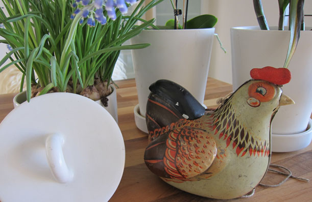 Man kann ja nicht auf solch grossen Flohmärkten rumstöbern ohne etwas zu kaufen. Ein Metallhuhn, sowie acht entzückende, hauchdünne Porzellanschälchen, welche wie auf dem Bild als Eierbecher, kleine Vasen, Schalen für eine kleine Glacekugel…verwendet werden können, wechselten an diesem Tag den Besitzer.