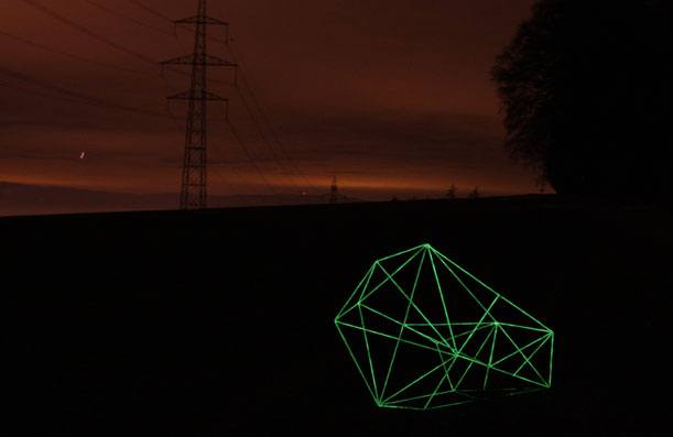 Masse, 210cm x 130xm x 140cm, Metall, Leuchtpigmente, 2010