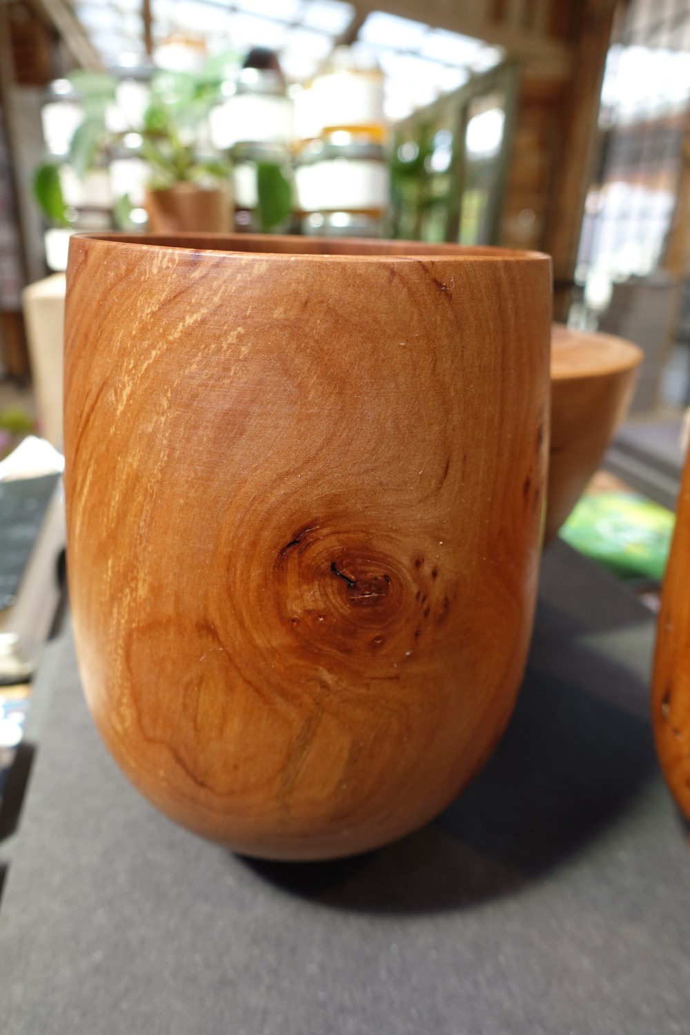 Bäume werden alt, können krank werden…müssen gefällt werden. Stämme oder dicke Äste aus dem eigenen Garten, von meinen Nachbarn, meinen Eltern oder einem Bekannten finden so den Weg zu mir. Manchmal werden sie noch nass direkt von mir verarbeitet, manchmal warten sie länger darauf, aus dem Dornröschenschlaf geweckt zu werden. Jedes Holz ist einmalig, erzählt von seinem Leben, weisst manchmal überraschende Einschlüsse oder ungewöhnliche Färbungen auf. Es ist immer wieder faszinierend zu erleben, was sich unter der Rinde verbirgt. Mit speziellem Drechselwerkzeug suche ich die ideale Form um das Holz zur Geltung zu bringen. Millimeter um Millimeter wird abgetragen, ein herrlicher Duft erfüllt das ganze Atelier, bis am Schluss eine Schale aus dem Holz geschält ist. Unikate die durch ihre Maserung nicht schöner sein könnten.
