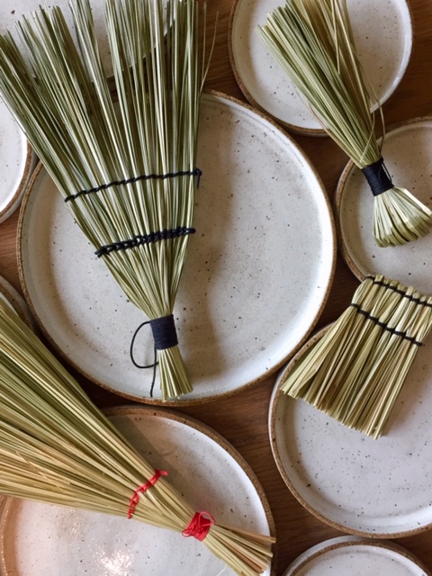 Handbesen habe ich schon einige gekauft – vor allem im asiatischen Raum. Ihre Vielfalt faszinierte mich schon immer. Zur Schalenkollektion Enos wollte ich selber solche Handbesen anfertigen. Sei es um meine Brotgehformen auszuwischen, die Asche im Cheminée zusammen zu fegen oder im Atelier schnell etwas auf einen Haufen wischen…Erste rudimentäre Skizzen zeigen auf in welche Richtung ich möchte. Doch welches Material ist ideal und wo kann ich es beziehen? In Nadine Meier, Korbflechterin, Gestalterin und Dozentin, fand ich die richtige Person für einen experimentier – Nachmittag. Pferdehaar wurde genau so getestet wie veganes Leder. Knüpftechniken wurden mir geduldig erklärt und umgesetzt – spannende Stunden mit viel Lust am Ausprobieren ohne zwingend ein Produkt zu realisieren – dies macht Spass. Nun kann ich an einem definitiven Endprodukt weiter arbeiten. Hier einige Impressionen von unserem Arbeiten.