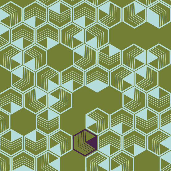 Fünf Völker stehen bei mir im Garten – Queen (mein allererstes Volk), Willi, Alpha, Quattro und Mary (ein Ableger von Queen). Inspiriert von ihnen entwerfe ich im Moment Muster – denn ich habe Zeit, da sie in der Winterruhe sind. Sei es der „Schwänzeltanz“ der Bienen, welche den Kollegen den Standort von Blüten verrät, die sechseckige Wabenform als solches oder die pure Masse an dicht gedrängten, übereinander kriechenden Bienenleibern – graphisch auf ein minimum reduziert nehmen Formen und Muster so gestalt an.