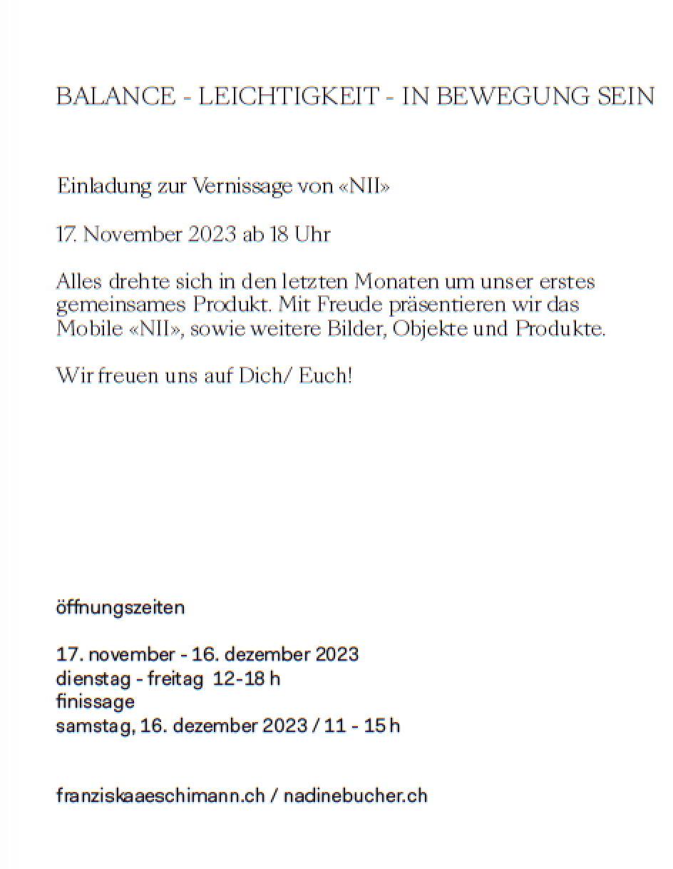 Am 17. November 2023 ist es endlich soweit. Franziska Aeschimann und ich präsentieren ab 18.00 Uhr unser erstes gemeinsamens Projekt – das Mobile NII.